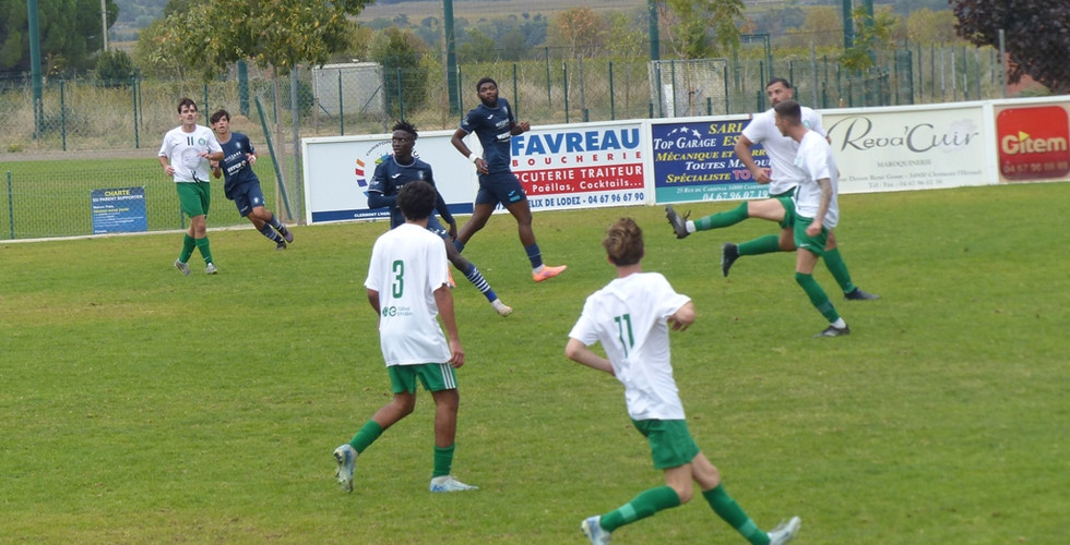 D’entrée de jeu ou presque, le portier visiteur gagne son duel face à Sanneh Jammeh parti seul au but . Loin de rester les deux pieds dans le même sabot, les bleus continuent à produire du jeu et sont récompensés à la 30’ par un but du même Sanneh Jammeh parti dans le dos de la défense pour réussir la deuxième chance offerte en face à face avec le goal (1-0 à la 30’). Ils continuent sur leur lancée et Dylan Francisque trouve sur son chemin un défenseur qui renvoie la balle en corner. Ce temps fort n’est malheureusement pas suffisamment productif pour donner un avantage significatif aux locaux . Obligés de réagir, Lespignan Vendres lance ses deux ailiers qui vont secouer la défense clermontaise et à la 42’, Axel Mansencal trouve la faille et remet les deux équipes à égalité 1 – 1. Score à la mi-temps : 1 -1. Emmanuel Steven FOURNIER Yanis (Capitaine) SOULANGES Franck JAMMEH S